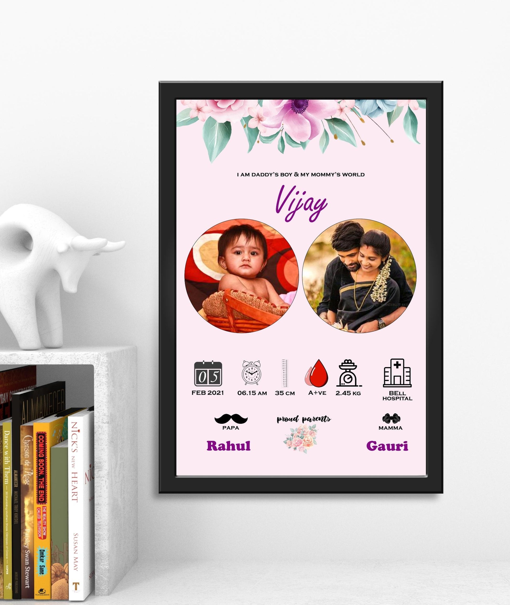 As soon as we receive the order, we will design and share the soft copy with you on WhatsApp. Your approval is required before we print and frame it.