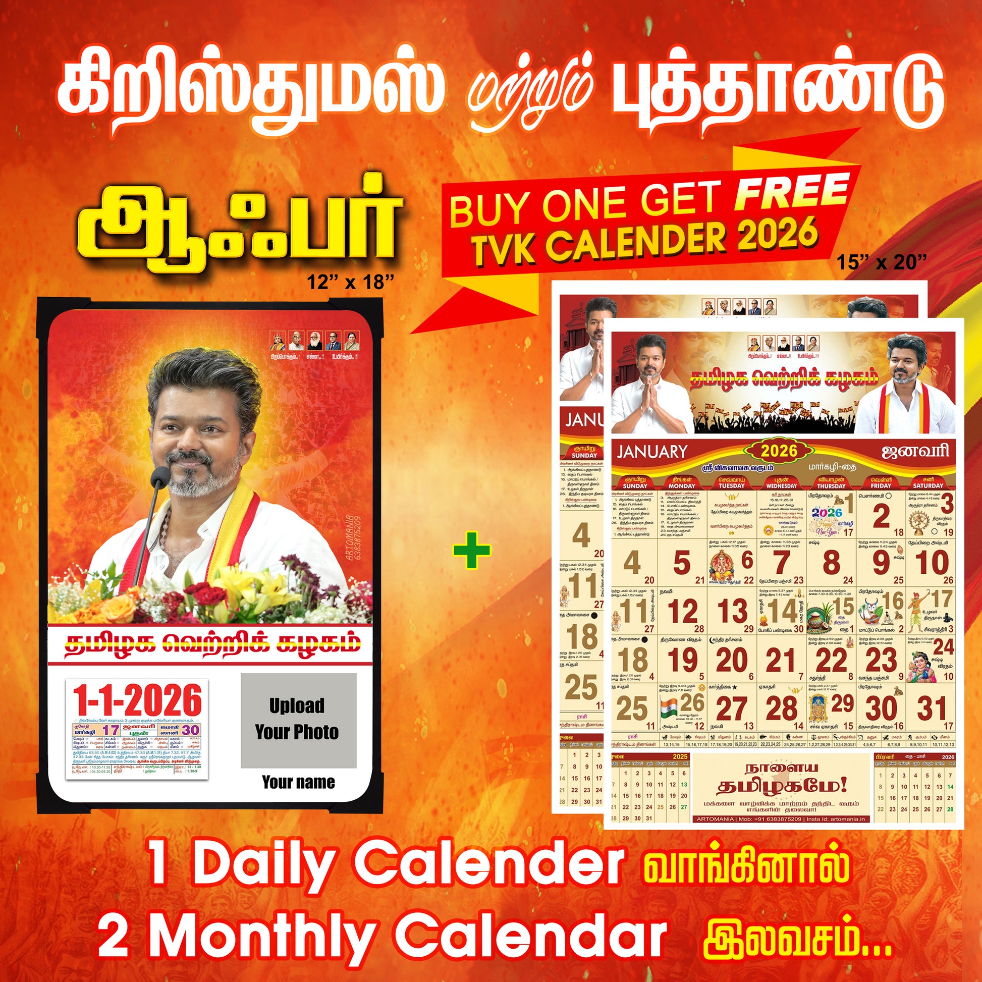 Buy one Get Two - TVK Calendar 2026 (Daily Calendar 12x18 Inches & Monthly Calendar 15x20 Inches) Combo Offer